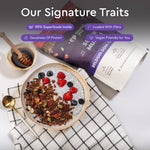 Indulge in Nourish You's homegrown Belgium dark chocolate muesli, a plant-based, gluten-free, homegrown millet blend (ragi, jowar, bajra - ancient grains) delight crafted for health-conscious foodies. Made with rich dark chocolate harvested from the lush cocoa plantations, this muesli delivers an authentic and wholesome experience. With no refined sugar or preservatives, it’s a guilt-free way to satisfy your cravings. Packed with 14g of protein per 100g serving, it fuels your body while supporting muscle health. This perfect blend of indulgent dark chocolate and crunchy goodness offers a nourishing and delicious start to your day or an anytime snack!