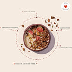 Start your day with a deliciously nourishing bowl of granola, packed with fiber-rich Oats, sweet chewy Figs, and the nutty crunch of Almonds. Lightly sweetened with Organic Jaggery, this granola strikes the perfect balance between natural sweetness and warm, spiced undertones of Cinnamon.