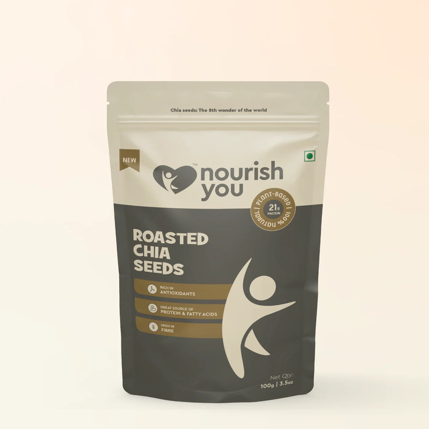 Nourish you's Roasted chia seeds are fiber-rich, homegrown, and gluten-free, making them a perfect addition to a healthy diet. Packed with protein, they support muscle repair and energy, while their antioxidant-rich profile helps combat free radicals and promote overall wellness. These roasted seeds offer a delightful crunch and are perfect for sprinkling on salads, yogurt, or enjoying as a snack. A simple, nutrient-packed food to nourish your body!