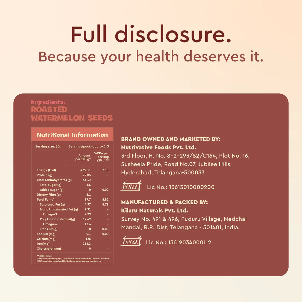 Nourish you's Roasted watermelon seeds are calcium-rich, making them a wholesome, gluten-free snack. Packed with essential nutrients, they support bone health and provide a satisfying crunch. These nutrient-dense seeds are naturally rich in vitamins and minerals, perfect for fueling your day. Enjoy them on their own, in salads, or as a topping for your favorite dishes. A delicious and nutritious way to nourish your body with every bite!