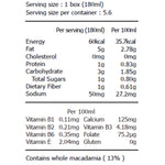• Ingredients: Macadamia milk 95% (whole macadamias 13%), Sunflower Seeds 5%